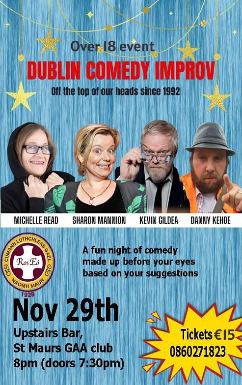 We're thrilled to invite you to a Comedy Night at St Maurs on Saturday, 29th November β featuring a fantastic lineup of comedians from the Dublin Comedy Improv Club!